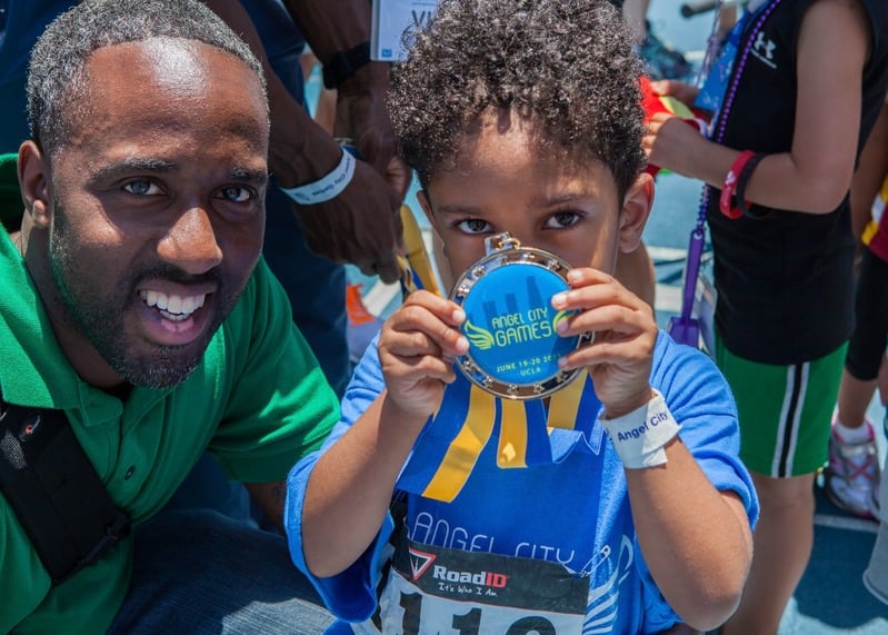 In October 2014, we partnered with UCLA Recreation to create Angel City Games, a multi-sport competition and celebration unlike anything Southern California had seen. The first Games in June 2015 featured 2 sports, Track and Field and wheelchair basketball, and we exceeded every expectation: 150 athletes participated, and the energy was electric. Hollywood stars Adam Sandler and Christian Bale joined pro athletes on the sidelines to cheer competitors and participate in our Celebrity Wheelchair Basketball Game. Fox Sports AM 570 broadcasted live from UCLA’s Drake Stadium, bringing adaptive sports to LA’s airwaves.